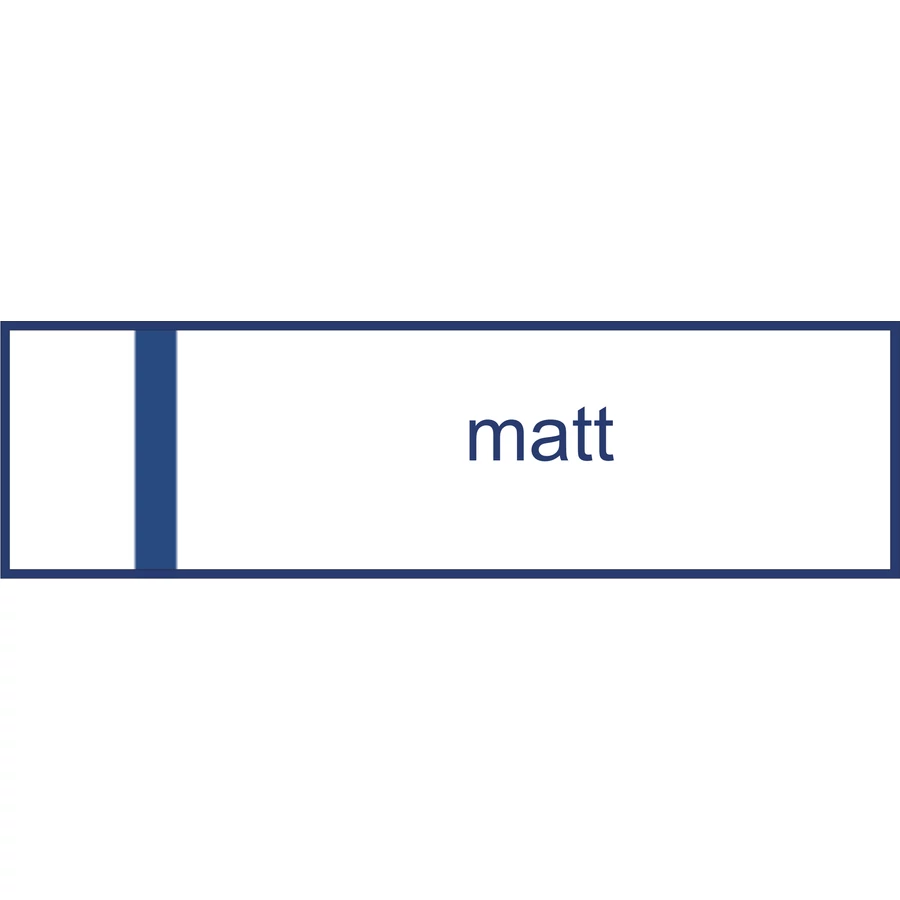 | 140 x 40 mm-es műanyag névtábla, szélein fazettázva (45 fokban lecsiszolva). | |