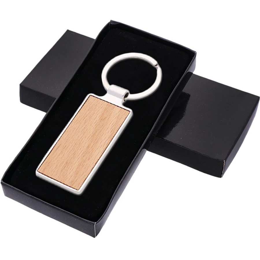 Fém kulcstartó fával kombinálva.