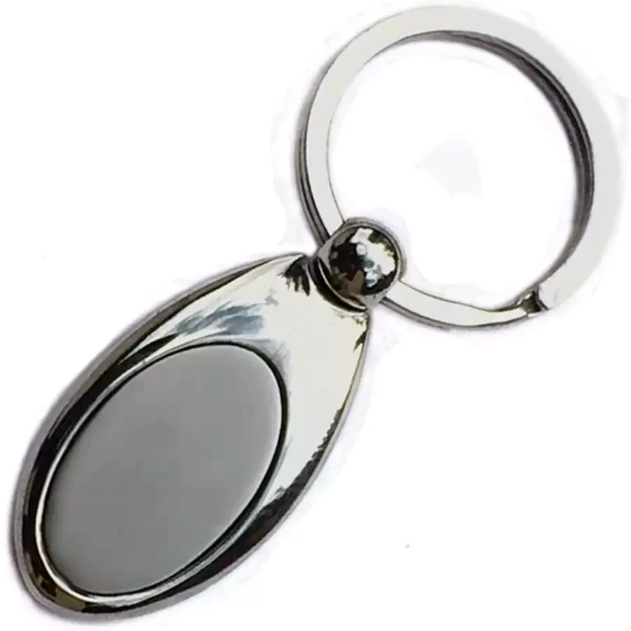 Fényes, ezüstszínű kulcstartó, középen matt gravírozható résszel.