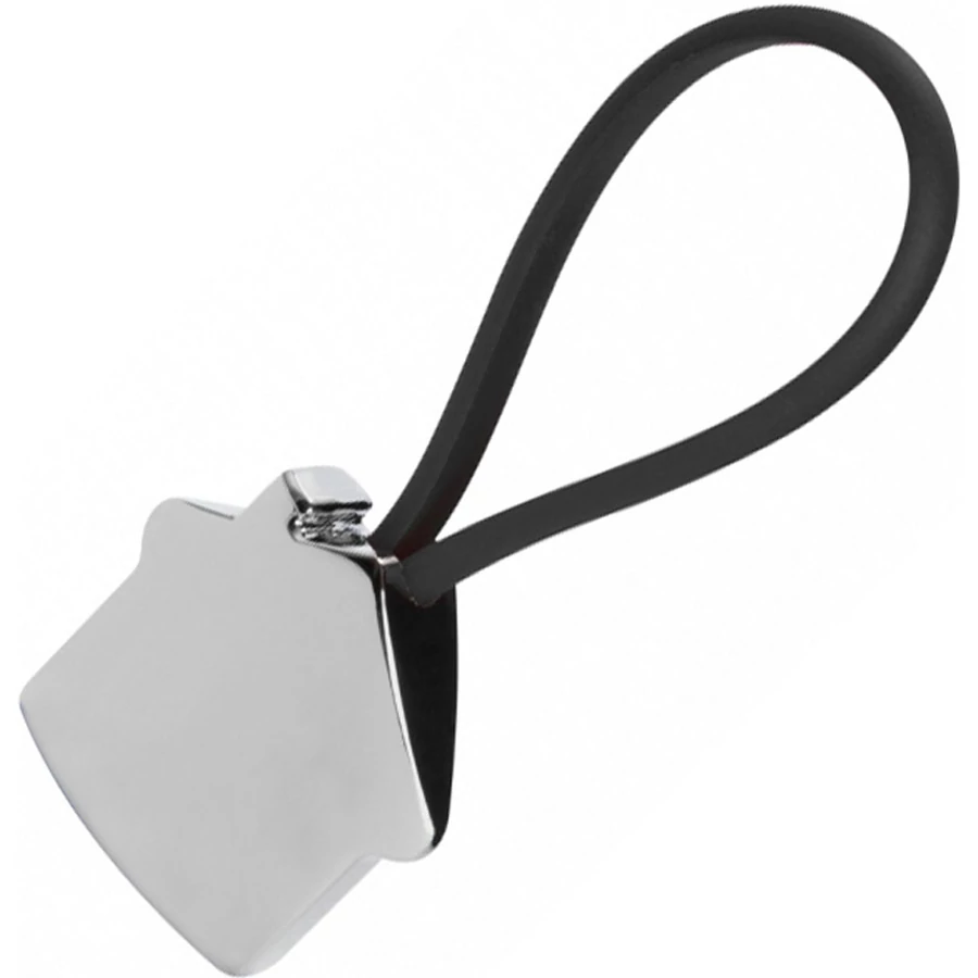Fényes ezüst színű fém kulcstartó, színes gumi hurokkal, celofán tasakban.