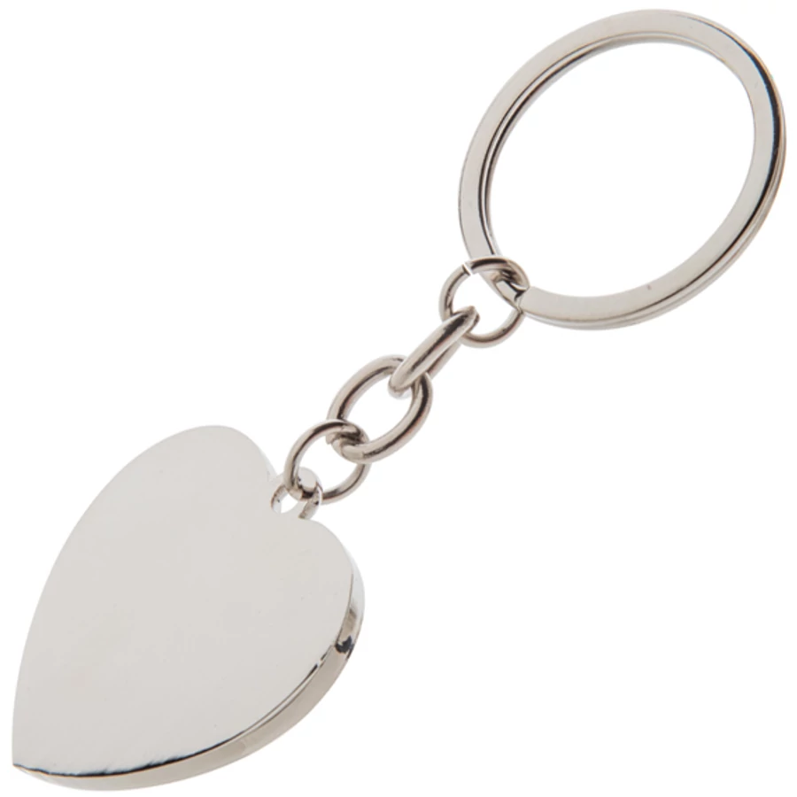 A kulcstartó hátsó oldala ezüst színű, ezen az oldalon lehet gravírozni.