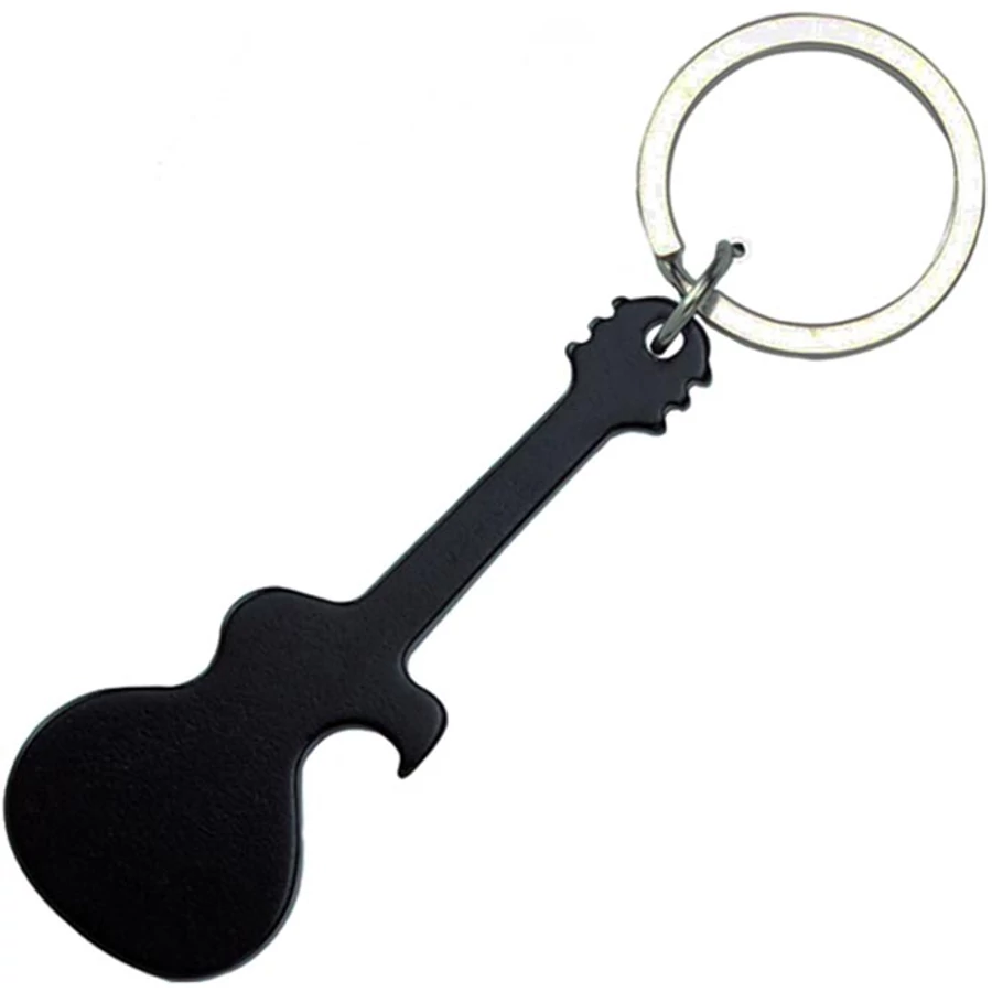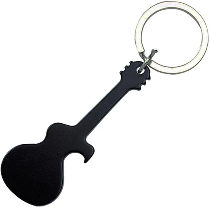 Gitár formájú alumínium kulcstartó, üvegnyitó funkcióval.