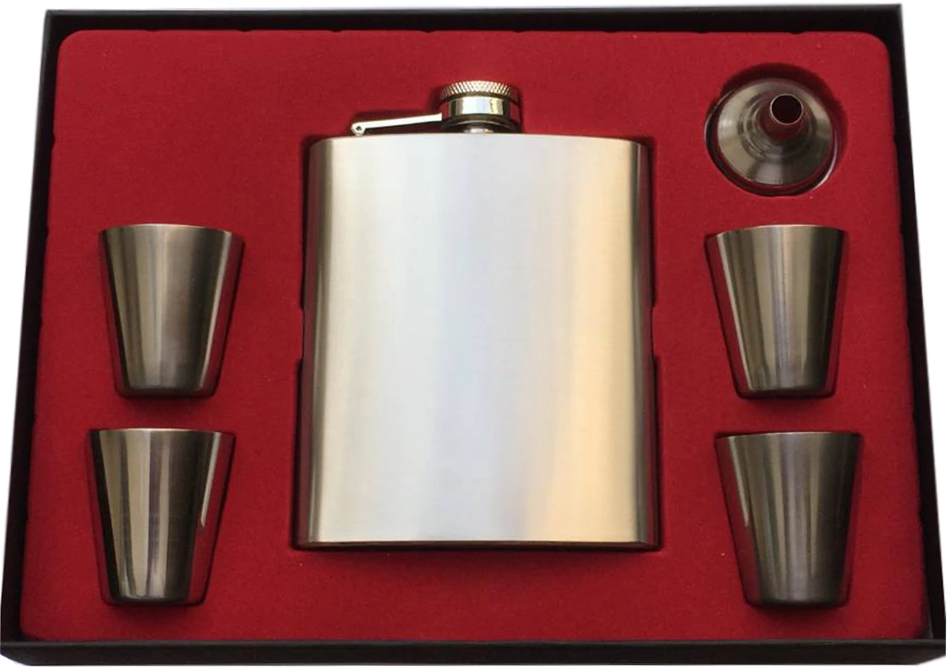 A szetthez tartozik még 4 db rozsdamentes acél pohárka és 1 db tölcsér a könnyebb utántöltéshez.