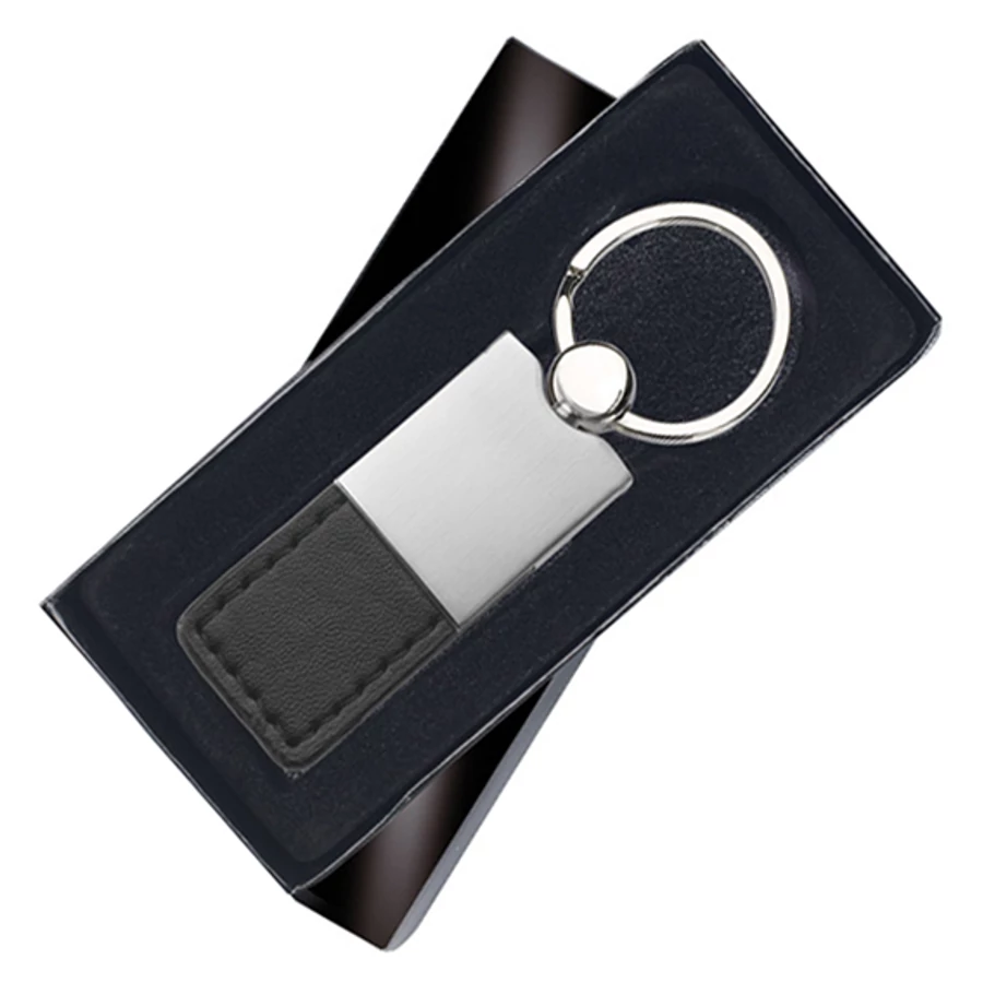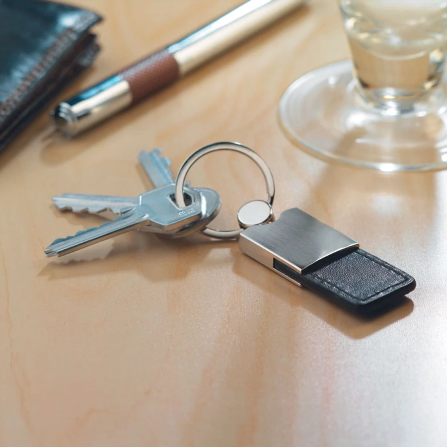 Elegáns kulcstartó, gravírozható fém résszel.