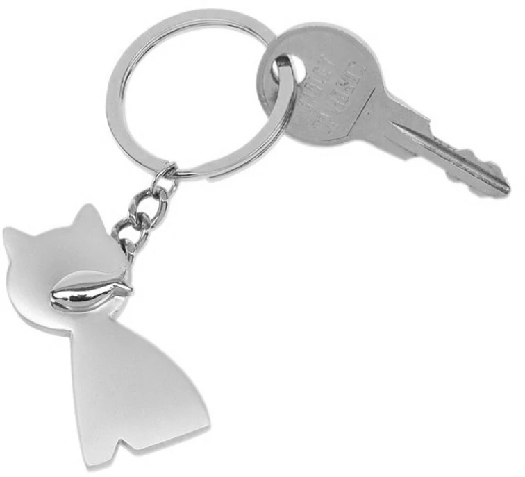 Cica formájú kulcstartó, halacskával a szájában. Mindkét oldalon gravírozható.