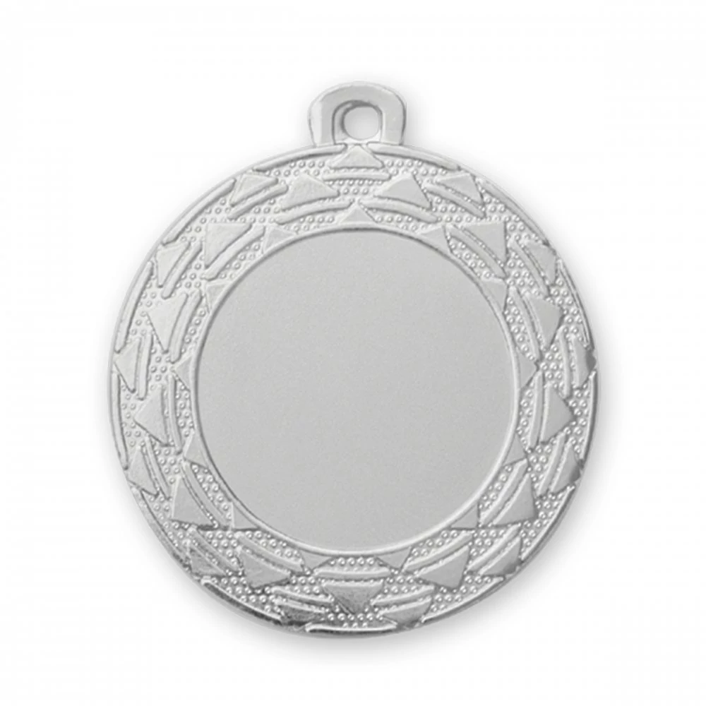 Ezüst színű kerek érem. A közepe jól gravírozható.